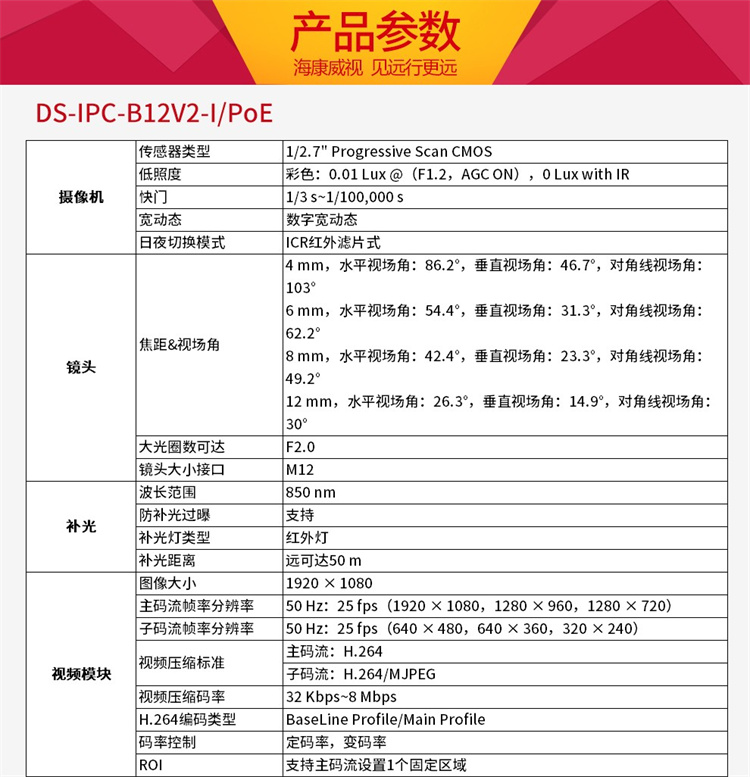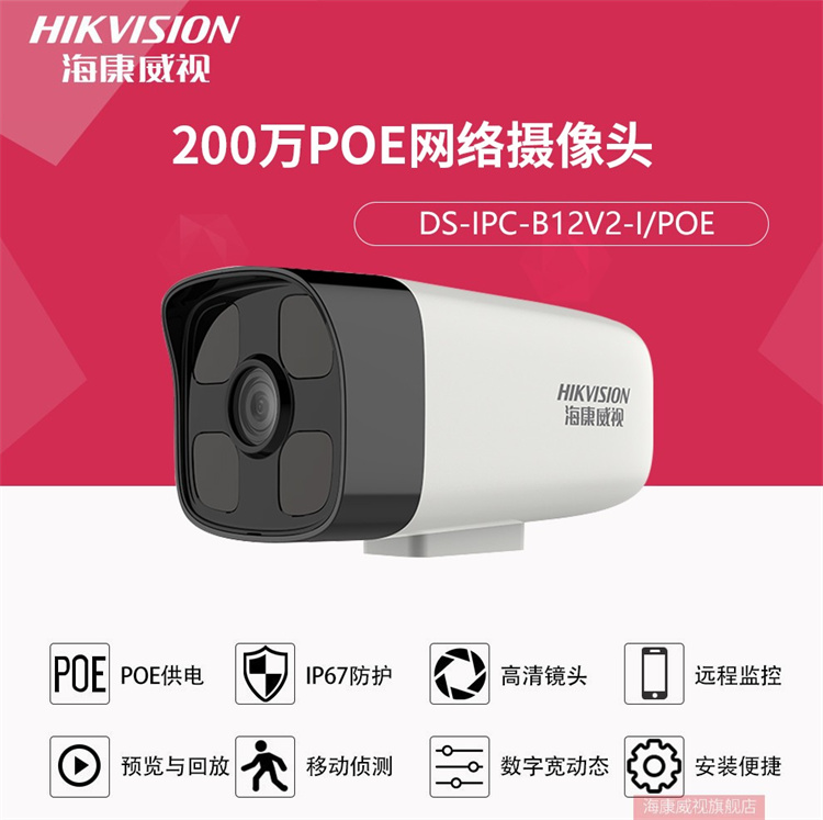 ??低?B12V2-I (200萬)視頻監(jiān)控設(shè)備 海康威視200萬網(wǎng)絡(luò)監(jiān)控?cái)z像頭連錄像機(jī)紅外50米帶POE 4MM焦距