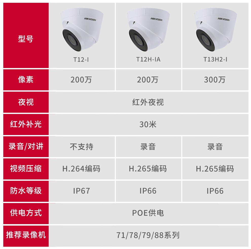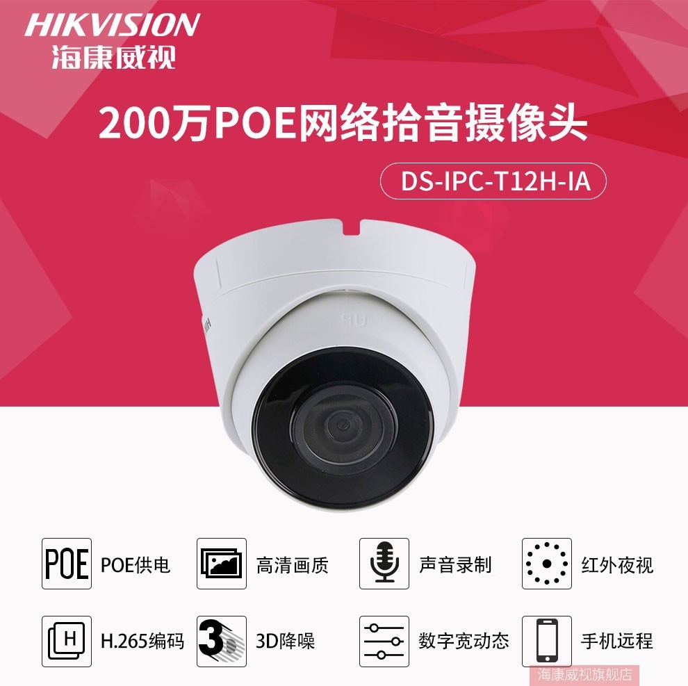 監(jiān)控攝像機 海康威視(HIKVISION)網(wǎng)絡(luò)監(jiān)控攝像頭紅外夜視室內(nèi)半球攝像機帶POE DS-IPC-T13H2-I(300萬拾音) 4MM焦距