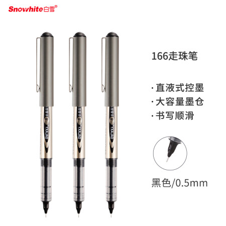 白雪 snowhite PVN-166直液式走珠筆學(xué)生辦公用中性筆全針管型簽字筆考試專用筆巨能寫0.5mm黑色12支/盒