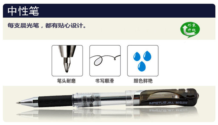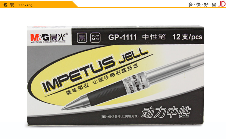 晨光 M&G 文具GP1111/0.7mm黑色中性筆 大容量子彈頭練字簽字筆 辦公水筆 12支/盒