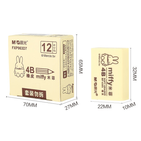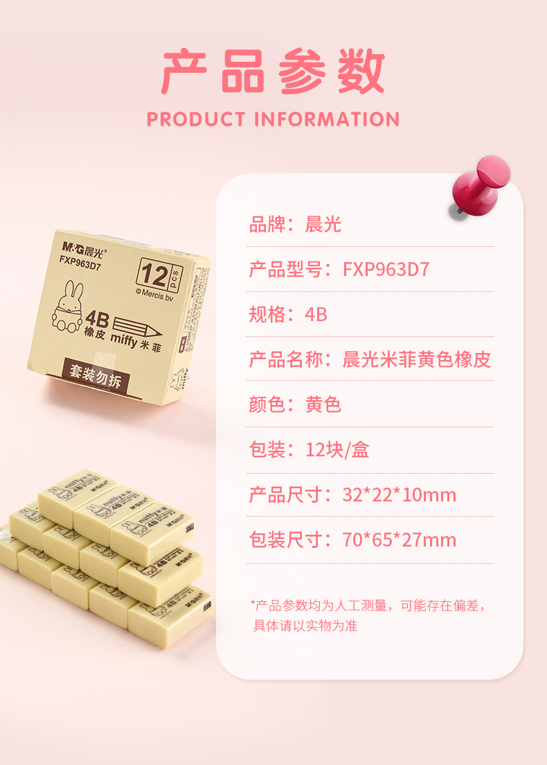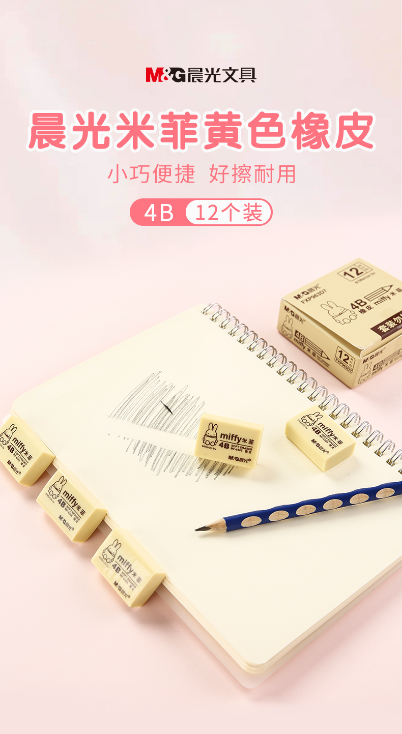 晨光 M&G 文具4B橡皮12塊裝 學(xué)生美術(shù)考試?yán)L圖橡皮擦 米菲系列學(xué)習(xí)用品 黃色小號(hào)FXP963D7