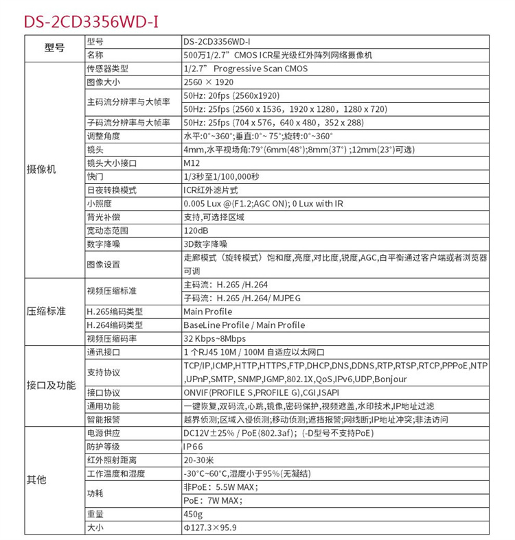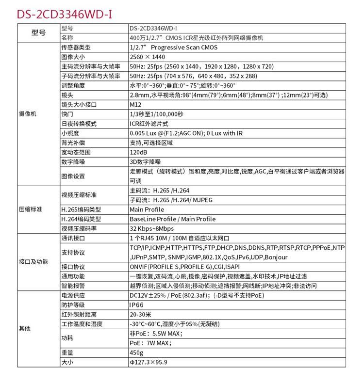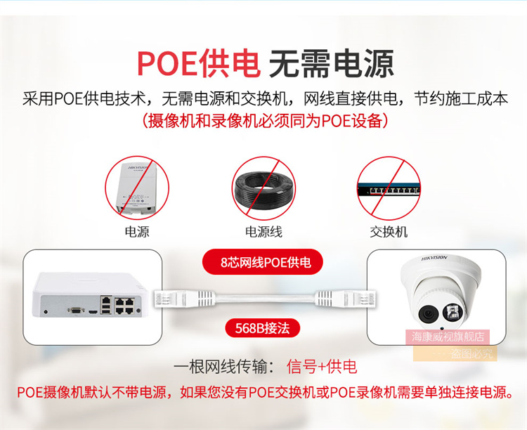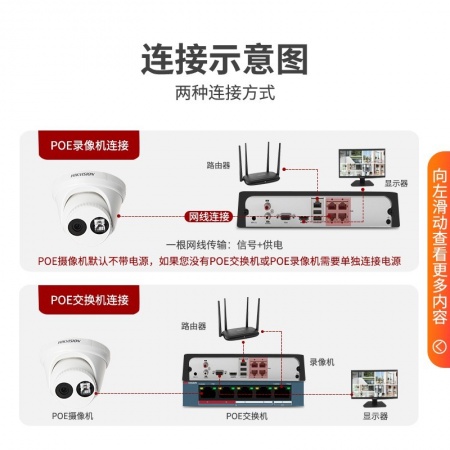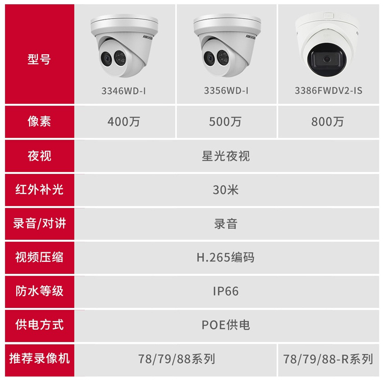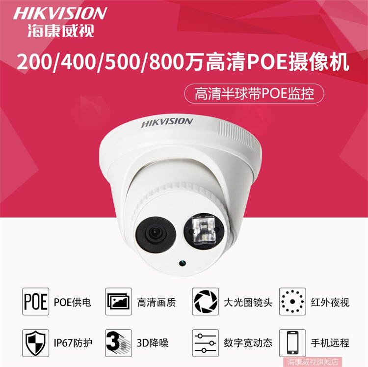 ??低?DS-2CD3346WD-I (400萬)海康威視星光級(jí)搭配監(jiān)控設(shè)備套裝高清半球帶POE6MM焦距