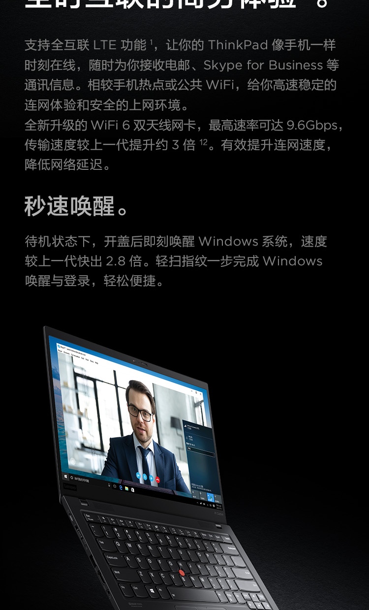 聯(lián)想ThinkPad X1 Carbon 2020(7GCD)14英寸輕薄筆記本i7-10710U/16G/512GSSD/FHD/4G版