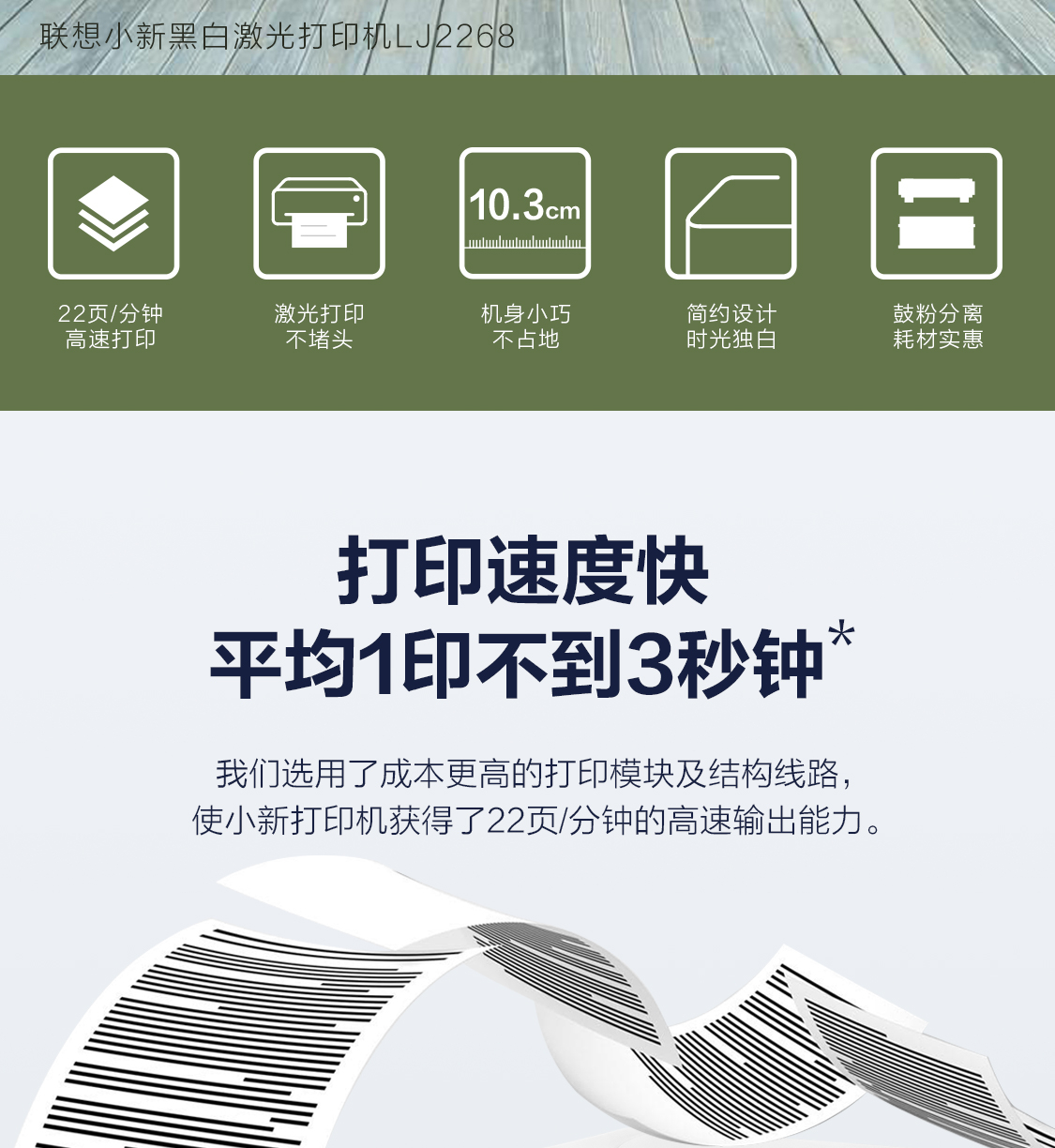 聯(lián)想(Lenovo)小新LJ2268 黑白激光打印機 小型商用辦公家用打印